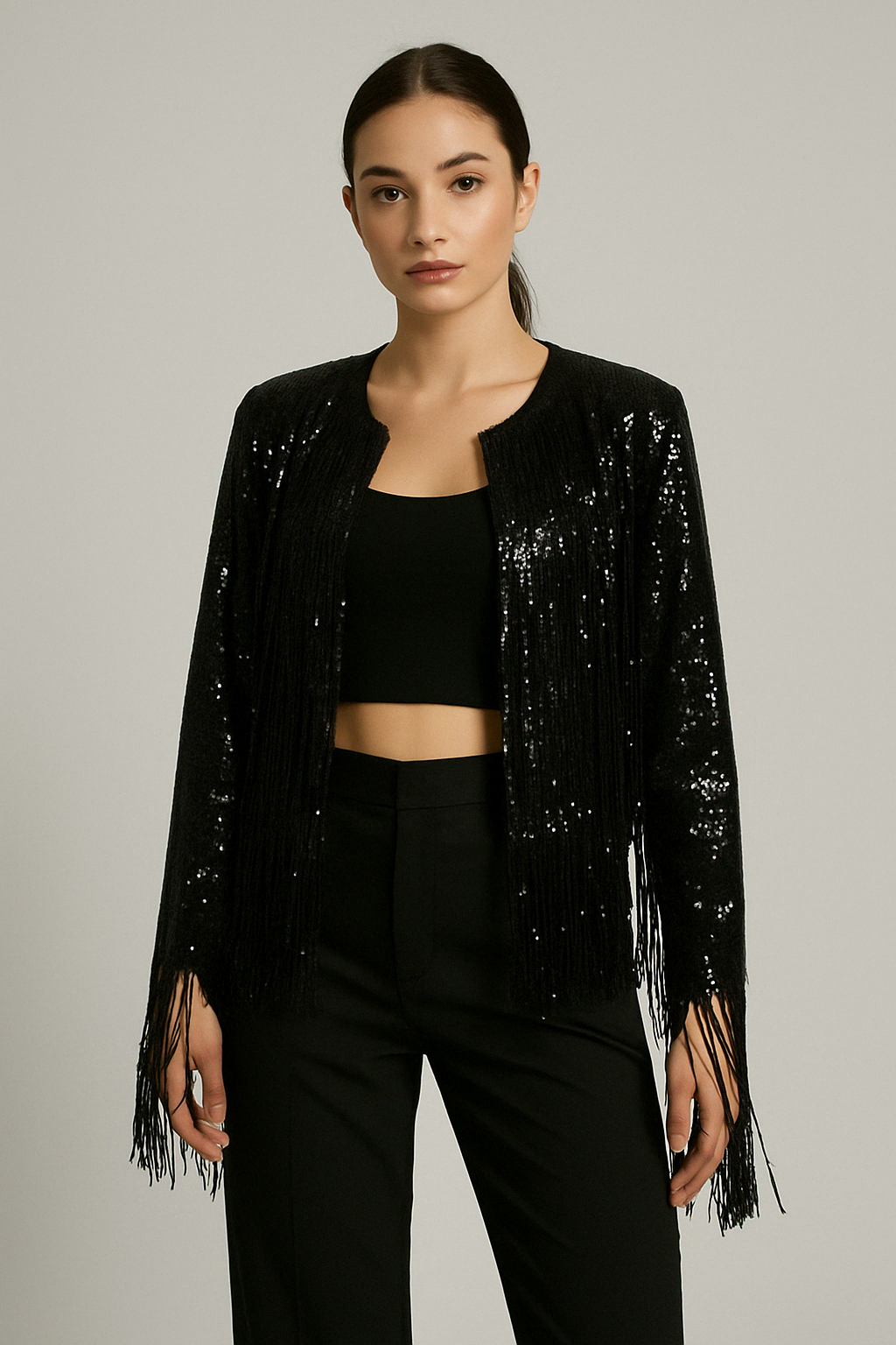 Σακάκι με παγιέτα και κρόσια | AMAROU